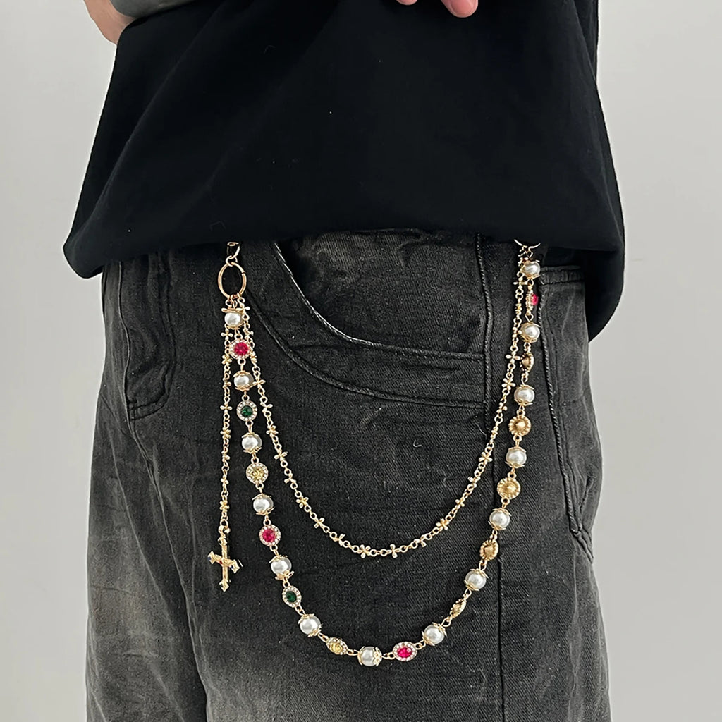 Salircon Exquisite Luxury Cross Pendant Imitation Pearl Keychain